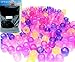 最近はいろんなショップで販売していますが、紫外線での変色と暗闇での蛍光の両方が見られるものが多く流通しています。紫外線の実験で使う場合は、蛍光があるとこどもが混乱することもあるので、私は紫外線発色のみのビーズを使っています。