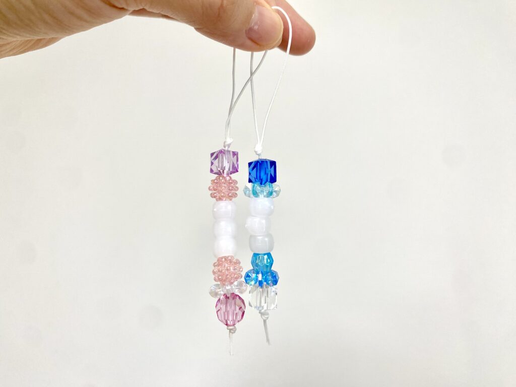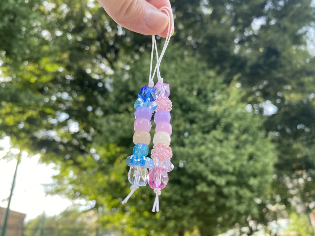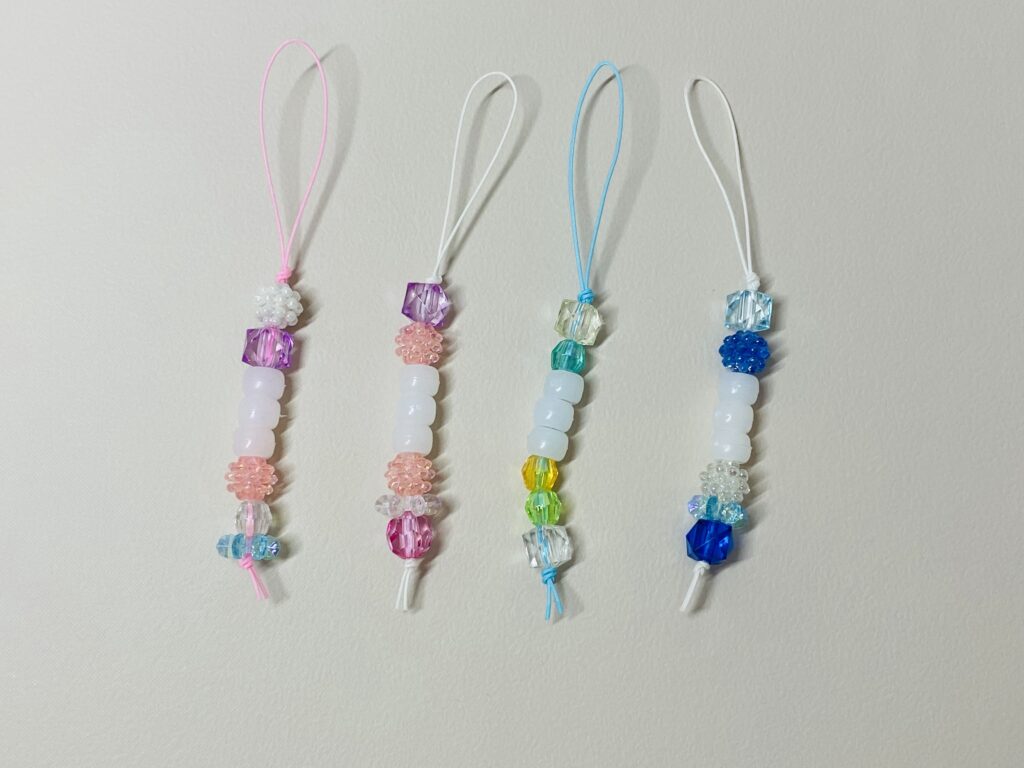 ふしぎなストラップには、真ん中に「3つの白いビーズ」があります。